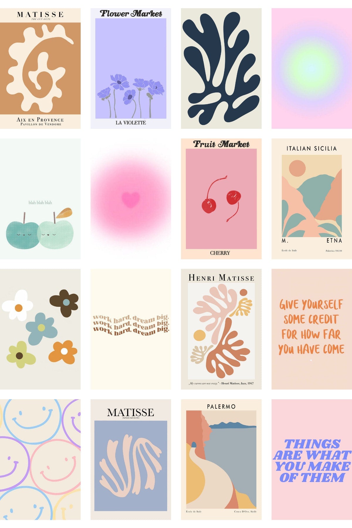 Boho Poster Seti - Arkası Yapışkanlı Poster Seti - 70 Adet Poster Kolaj Seti - Kutulu Set