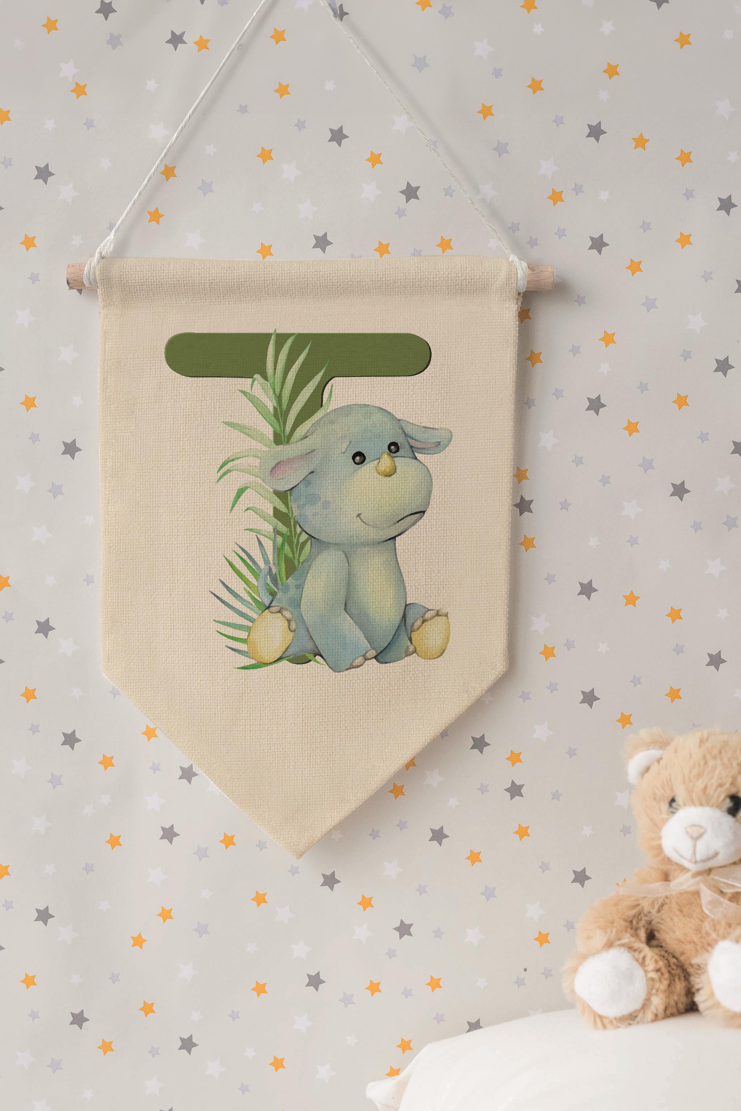 Çocuk Odası Dekor, Duvar Süsü, Ahşap Bebek Odası Dekor, Canvas Flama, Safari ve Hayvanlı T Harfi