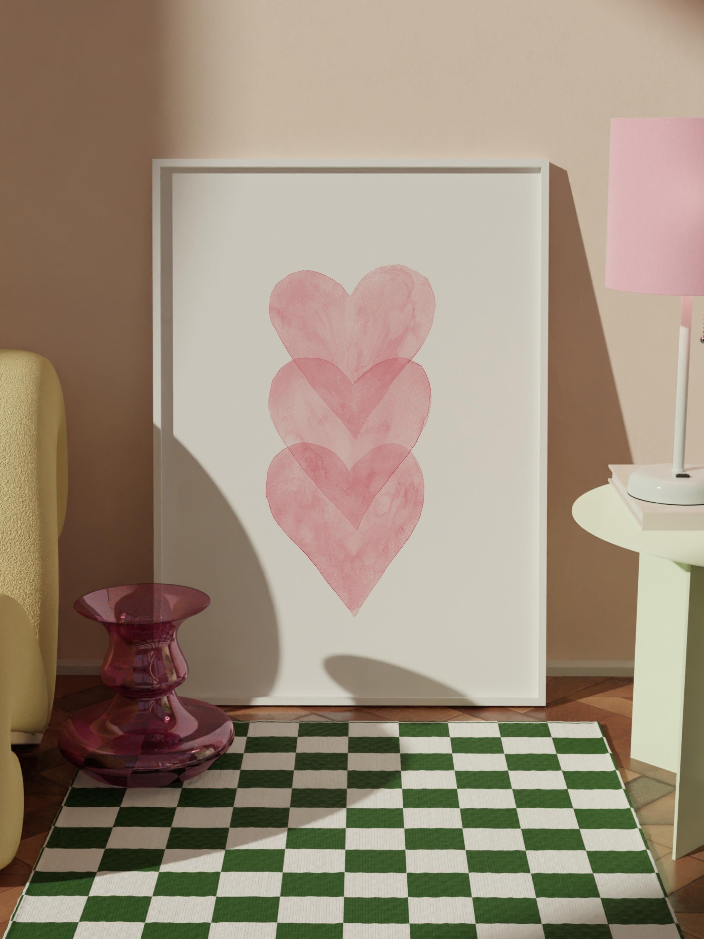 Watercolour Hearts Çerçeveli Tablo, Beyaz Çerçeve ve Poster, Duvar Tablosu Comfort Serisi NO:108491